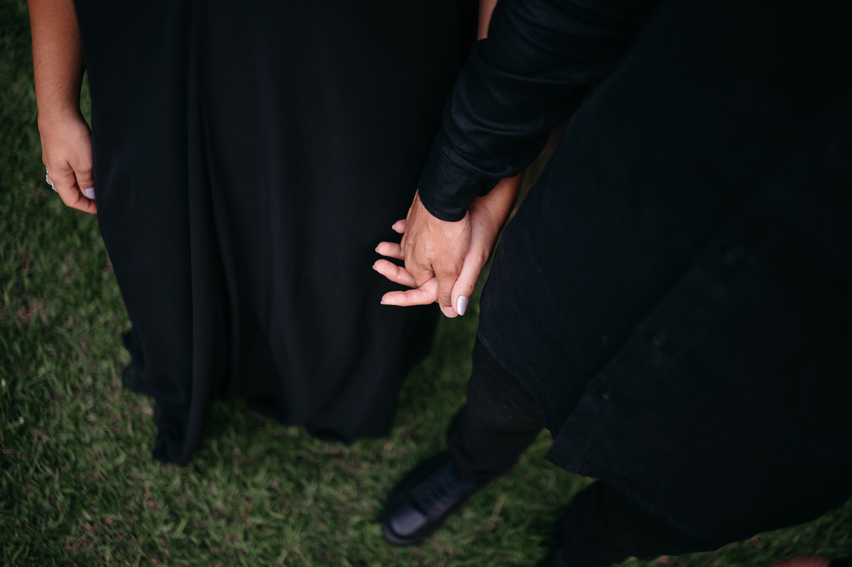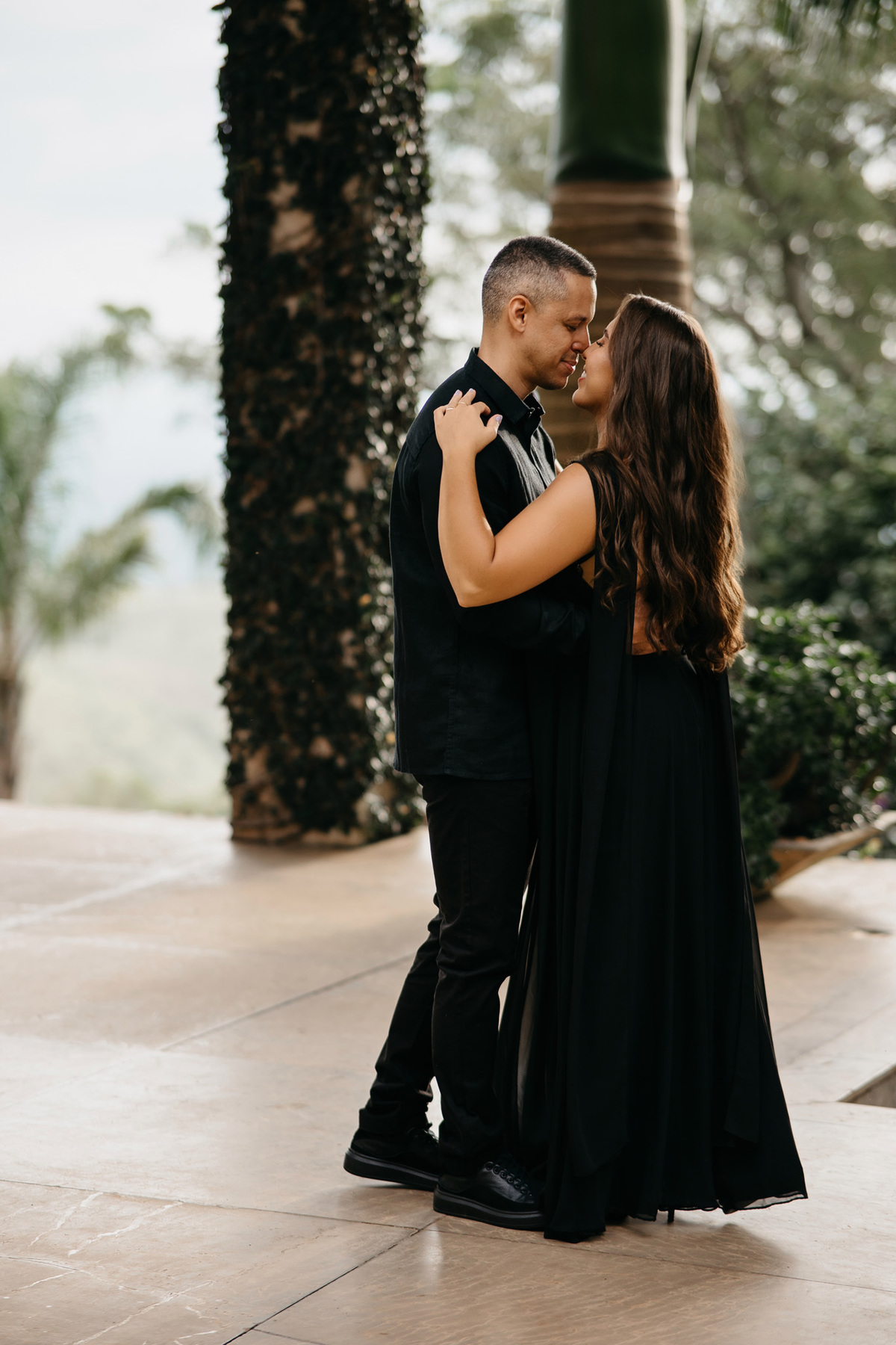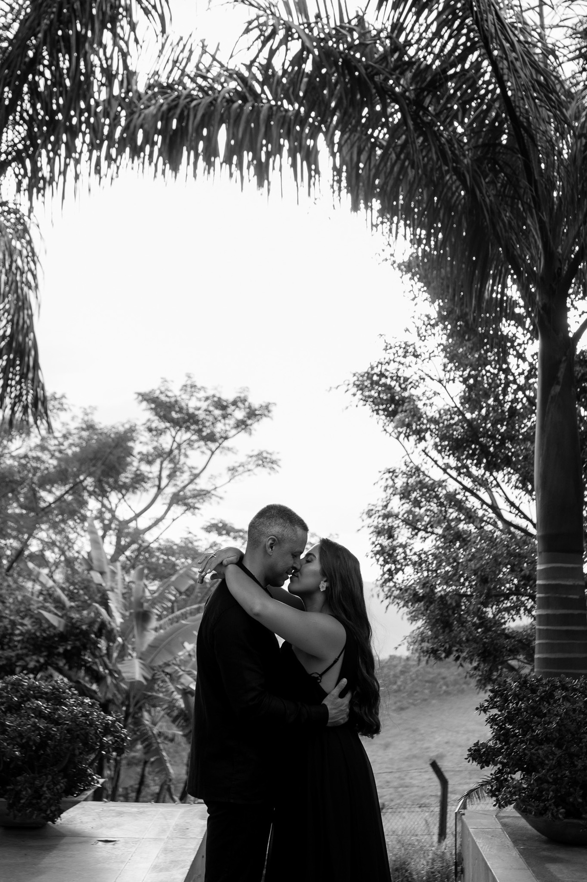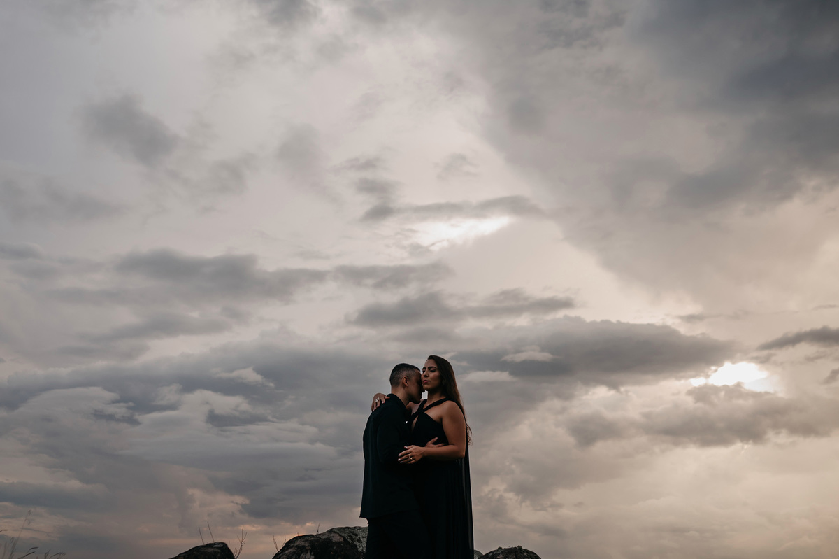 Quando o dia começou a se recolher, voltamos ao horizonte. Agora em tons de preto, sob um céu nublado que emprestou uma aura mística e romântica ao momento, eles se fundiram à paisagem. O cenário, embora imponente, tornou-se pequeno diante da entrega de um abraço suave.