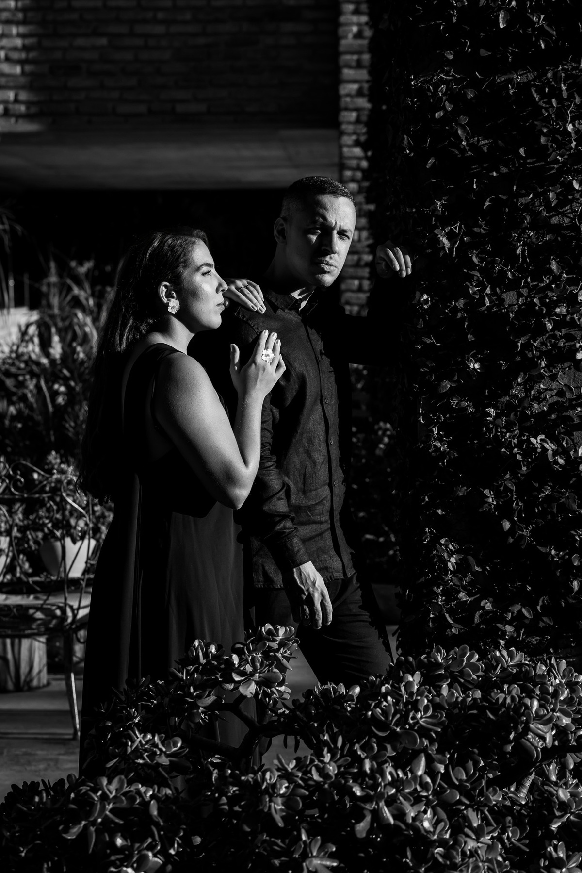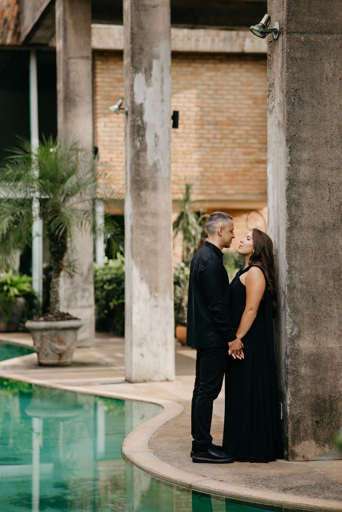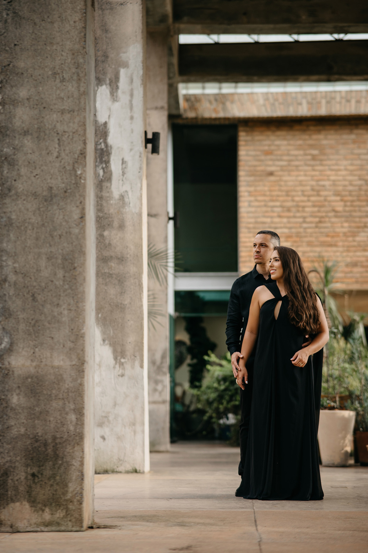 Quando o dia começou a se recolher, voltamos ao horizonte. Agora em tons de preto, sob um céu nublado que emprestou uma aura mística e romântica ao momento, eles se fundiram à paisagem. O cenário, embora imponente, tornou-se pequeno diante da entrega de um abraço suave.